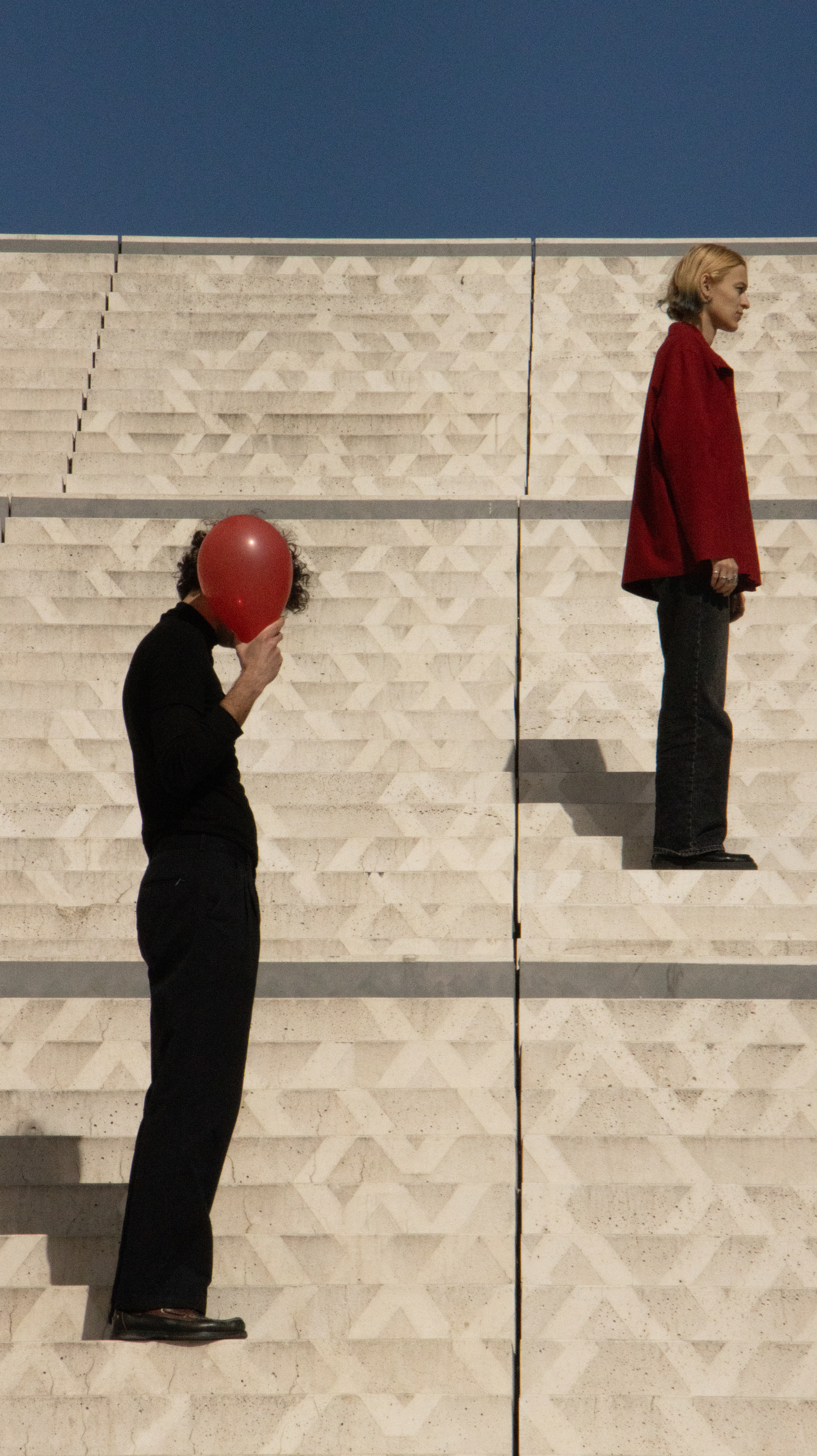 Cette série photographique a pour projet de montrer le doute en représentant une rencontre. Le ballon évoque l'enfance et l'innocence, il vient en contrepoint de la chemise rouge appartenant à la mère, et permet de créer un lien entre ces deux personnages. De ce lien imperceptible nait le doute mis en scène par le mouvement, et dont l'aboutissement demeure inconnu.